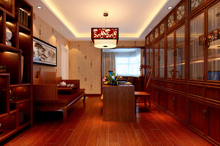 全局设置极有分寸又极其丰富地传达着家居主人的内心,饰以精巧的灯具和雅致的挂画,使整个居室在浓浓古韵中渗透了几许现代气息,从而提升了主人的身份与品位。