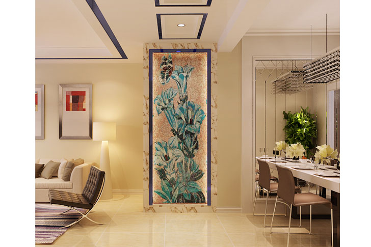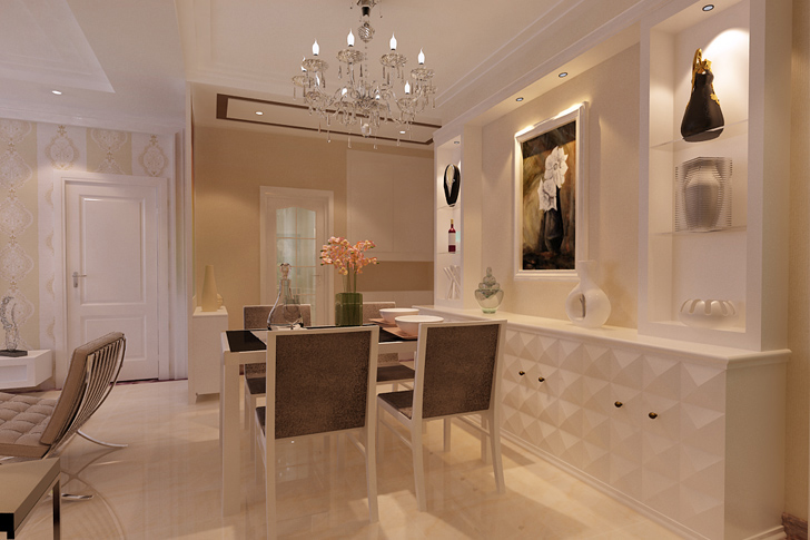 此案为三房户型,空间尺寸布局合理,采光良好,南北通透,客厅和餐厅都有相对独立的区域。本设计重点是在电视墙处,隐形门处理方式,既符合日常生活习惯, 又使得空间整洁合理,加上石材的运用,使得空间彰显高贵典雅的气质。