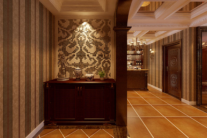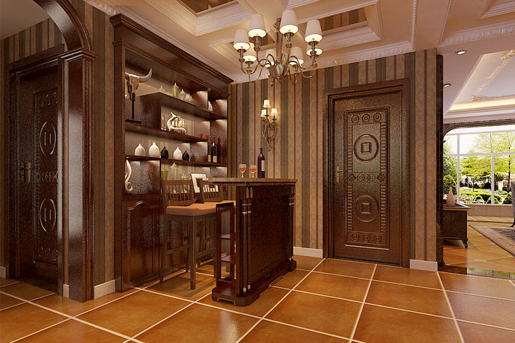 此案为经典三房户型,143平米,客厅和餐厅都有相对独立的区域,而且空间尺寸布局合理,采光良好,南北通透。本设计重点改动是在走廊处,走廊处添加了酒柜和吧台区,是餐厅空间的延伸。整体风格为古典欧式风格,实木垭口及护墙板的运用,沉稳不失尊贵,彰显高贵典雅的气质。