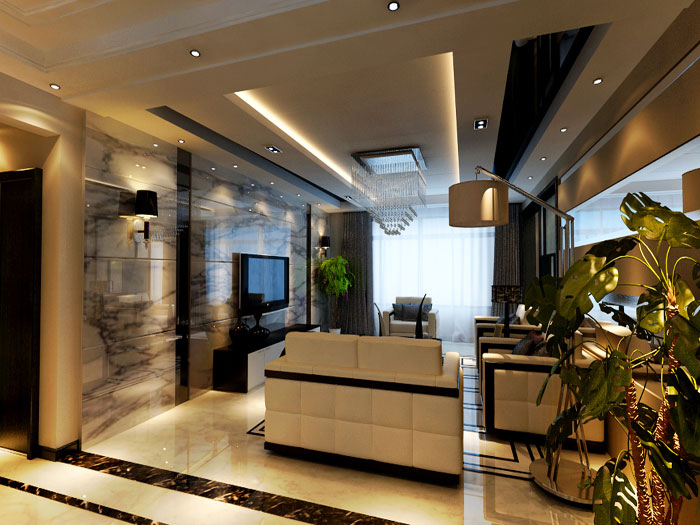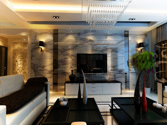 本案设计为现代简约风格,黑白灰色调。业主为一对年轻夫妇,还没有小孩。为了更适合主人的居住要求,本案强调空间的自然融合。客厅空间讲究精巧丰富.