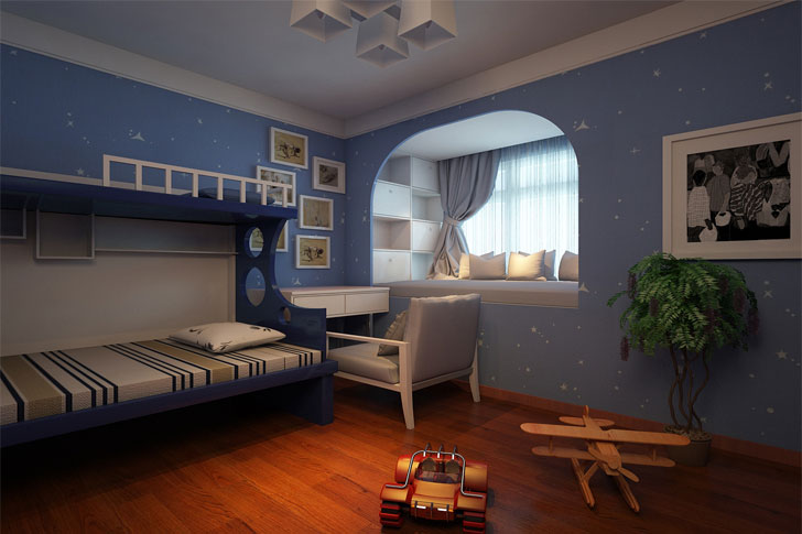 3:结合户型的造型,考虑把北卧室凹陷的地方做成储藏空间及小孩子的玩耍空间。