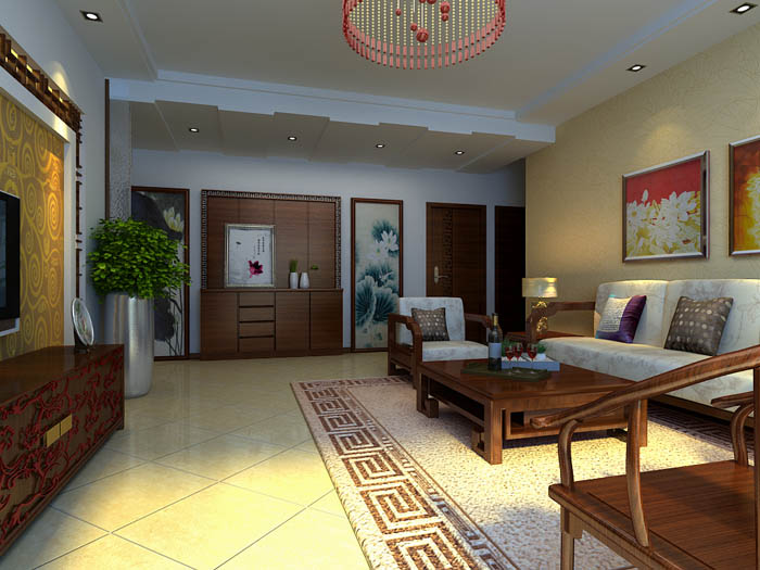小区:滨河花园 面积:160㎡ 户型:三居 风格:新中式风格