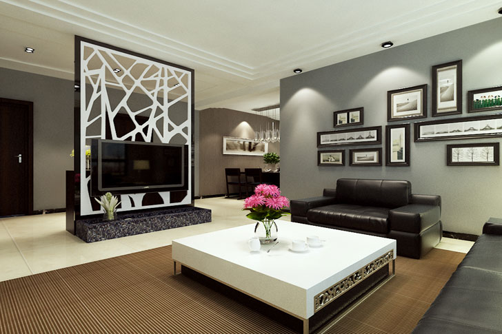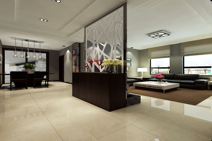 客厅的白色木质隔断与灰色大理石和亮黑色不锈钢的强烈对比,给利落的空间增添了一丝自然与时尚,突显了主人的个性!简中式元素的家具提升了主人的品味与艺术修养!明亮颜色的马赛克装饰画,不仅使空间的精致细节完美演绎,更加突显了空间的灵动性,给单调的布局带来一丝柳暗花明的惊喜!