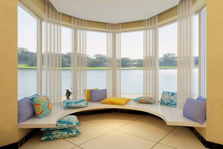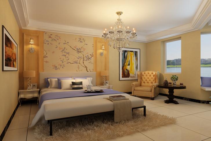 新古典风格卧室里,将采用米白色的床头造型,利用简化的线条彰显局部银箔的低调奢华感,而米白色与周边窗帘选用的树脂棕,也是非常新鲜的色彩配置法。