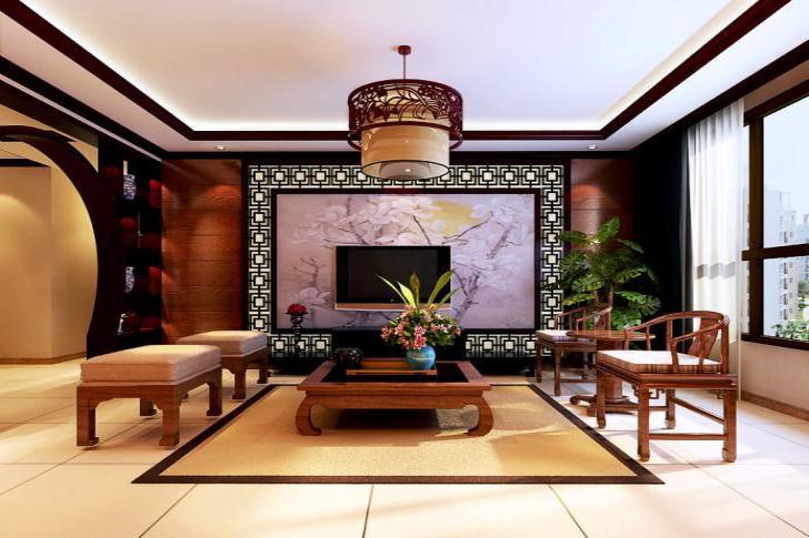 电视背景墙选用大面积的白色铺底,使人视线得到扩展放松,选用黑色,具有神秘感,游走在古代与现代之间,顿时为整个客厅添上一层神秘的面纱。不约而同的色调文化,为空间加了几分古朴与素雅的气质。