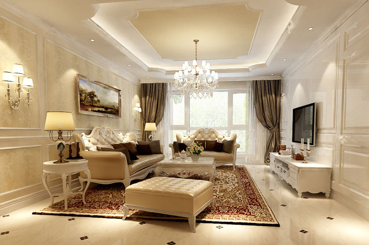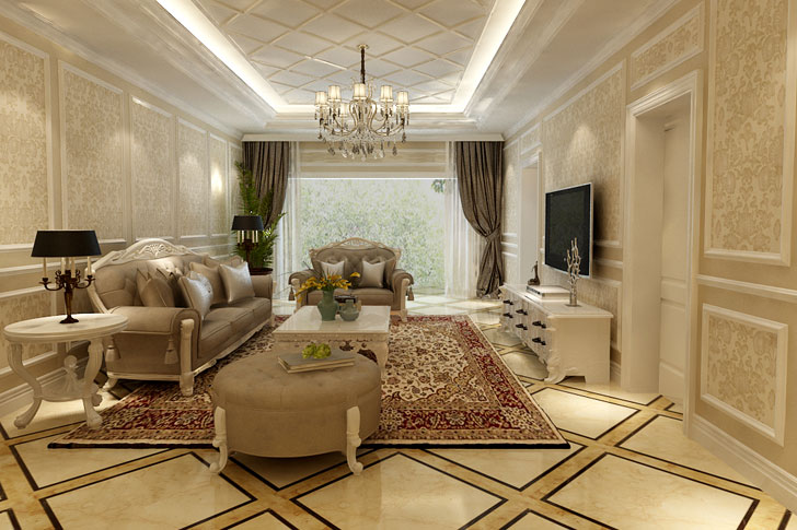 整个空间科学、合理的平面功能规划,让整个空间的使用率达到最高,可以说是近乎完美。 客厅主要是墙板和壁纸结合,家具主要选择复杂的欧式风格家具,复杂的曲线勾勒出了欧式风格的特点,更好的诠释了欧式风格。