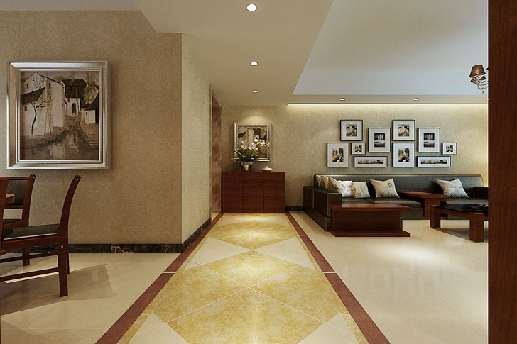 现代中式风格更多地利用了后现代手法,墙上挂一幅中国山水画等传统的书房里自然少不了书柜、书案以及文房四宝。 中式风格的客厅具有内蕴的风格,为了舒服,中式的环境中也常常用到沙发,但颜色仍然体现着中式的古朴,中式风格这种表现使整个空间,传统中透着现代,现代中揉着古典。这样就以一种东方人的“留白”美学观念控制的节奏,显出大家风范,其墙壁上的字画无论数量还是内容都不在多,而在于它所营造的意境。可以说无论西风如何劲吹,舒缓的意境始终是东方人特有的情怀,因此书法常常是成就这种诗意的最好手段。这样躺在舒服的沙发上,任千年的故事顺指间流淌。