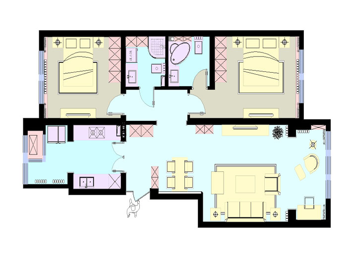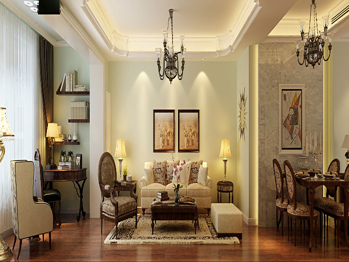 本案是简欧风格,简欧风格从简单到繁杂、从整体到局部,精雕细琢,镶花刻 金都给人一丝不苟的印象。一方面保留了材质、色彩的大 致风格,仍然可以很强烈地感受传统的历史痕迹与浑厚的 文化底蕴,同时又摒弃了过于复杂的肌理和装饰,简化了线条。但综合上而言就是结构上的对称性,造型上多以圆和方为主,装修材料多以精细和贵气为主。