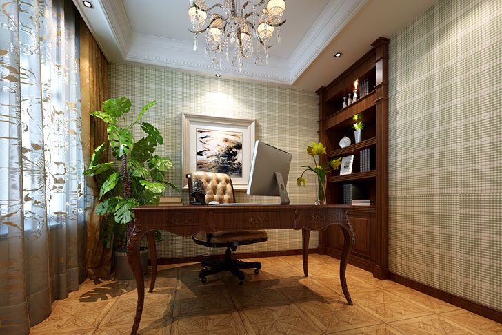 本案美式风格,客厅是宽敞而富有历史气息的,卧室布置较为温馨,作为主人的私密空间,主要以功能性和实用舒适为考虑的重点,书房简单实用,但软装颇为丰富,各种象征主人过去生活经历的陈设一应俱全,被翻卷边的古旧书籍、颜色发黄的航海地图、乡村风景的油画、一支鹅毛笔……即使是装饰品,这些东西也足以为书房的美式风格加分。