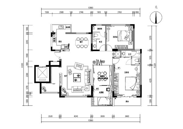 小区:世贸五里河城 面积:150㎡ 户型:三居 风格:新中式风格
