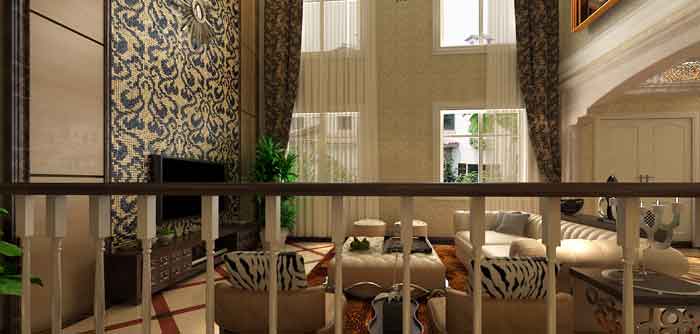 本案例采用各种新古典欧式的家具混搭配置,通过布艺,灯饰,摆件的搭配,协调并丰富着空间的表情,进而使得室内具有浓郁的生活气息,对于材质的选择很是考究,大厅和公共区域的地面,以及卫生间的墙地面通常采用花岗岩石材拼花铺贴,而卧室者采用实木地板结合手工块毯铺地。
