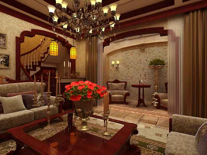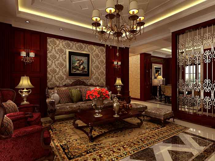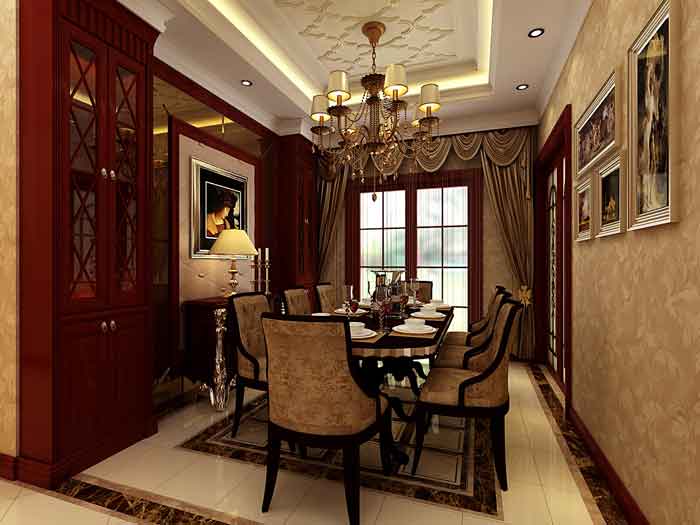 本案位于寿光威尼斯小镇 为样板间示范单位 前期通过与业主交流后 将风格定义为深色古典,客餐厅采用深色木材,顶面与地面的菱形拼花元素将欧式天地呼应的特征表现的淋漓尽致,门厅的圆形地拼花也是经过一番考究后加以运用,负一层为休闲空间,展柜的形状是欧式元素帕拉迪奥窗的转化 马赛克的运用尽显休闲意味,整个空间彰显出了欧式古典风格风格的高贵与奢华。