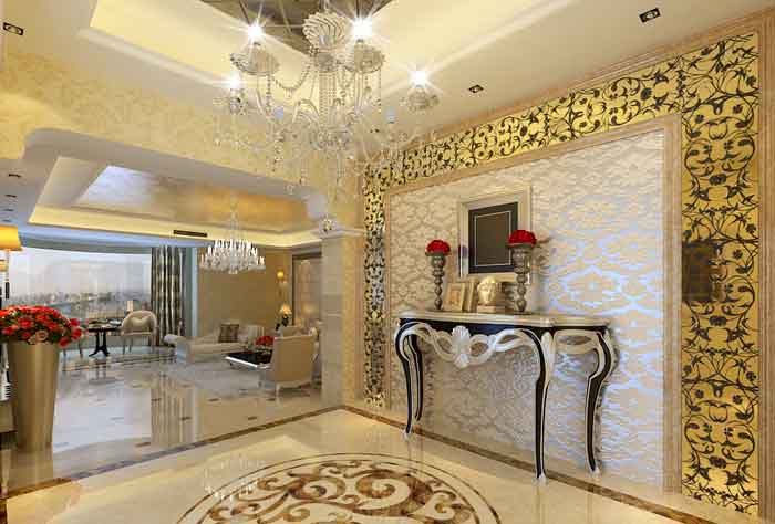 览尽所有设计思想、所有设计风格,无外乎是对生活的一种态度而已。为业主设计适合现代人居住,功能性强并且风景优美的古典主义风格时,能否敏锐地把握客户需求实际上对设计师们提出了更高的要求。无论是家具还是配饰均以其优雅、唯美的姿态,平和而富有内涵的气韵,描绘出居室主人高雅、贵族之身份。常见的欧式暗花壁纸、水晶灯、大理石拼花地面亦是新古典风格的点睛之笔。