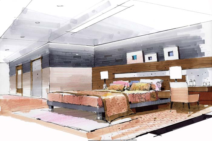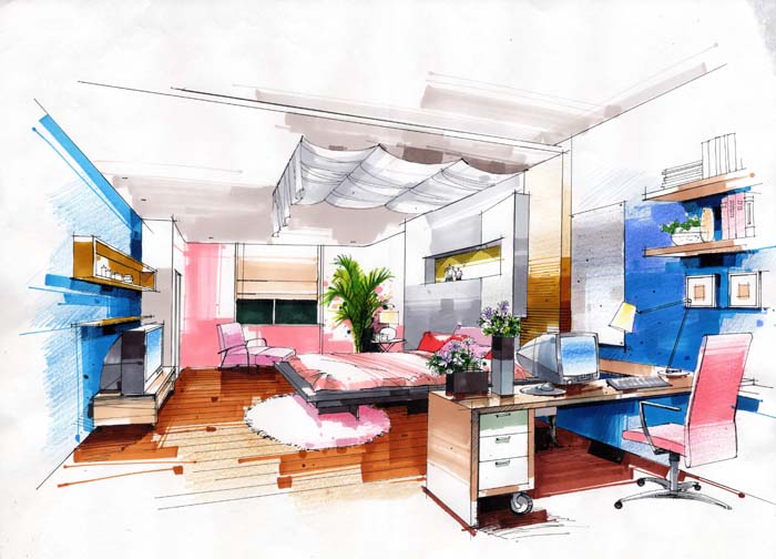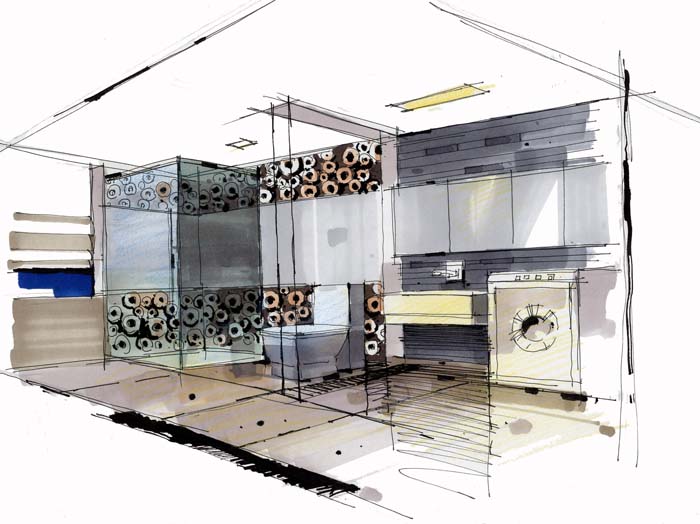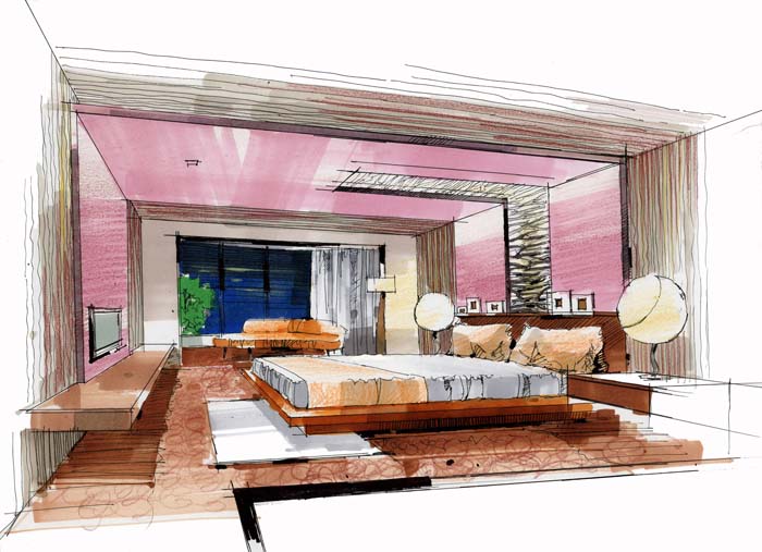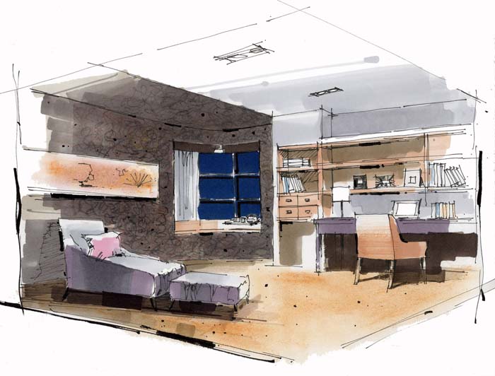 本案使用线条感、肌理感极强的皮纹砖和立面随意拼凑的几何形体将原有冰冷的水泥钢筋打造成宜居空间……
