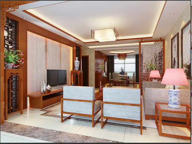 虚实是中式设计重视的又一个观念, 典型的中式空间讲究“隔断”,而这种隔断,目的并不在于要把空间切断,而是一个过渡、一个提醒、一个指示,常常“隔而不断”。譬如如今流行的造型墙、活动墙之类的元素,很久以前就被中国人运用自如了;还比如,墙面的留白,家具的虚功能和实体形的设计等,都是传统中式设计中的精髓。在新中式中依旧强调“留白”,例如在一些转折过渡空间里运用“留白”,可以使该空间有更大的弹性。