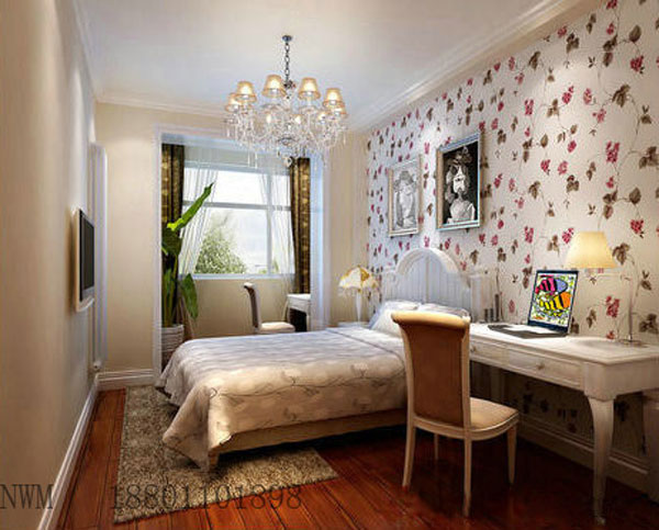 该设计方案由于层高的原因采用局部吊顶的处理手法,突现了现代简约风格的的简洁明快,运用深色的壁纸史纯净的空间更加稳重,带有色彩的点缀让整个空间灵动起来。