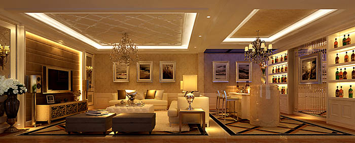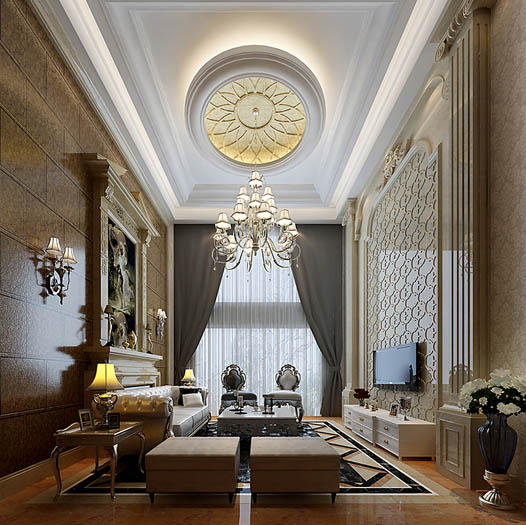 新古典风格通过对传统文化的认识,将现代元素与传统元素结合在一起,以现代人的审美需求来打造富有传统韵味的事物,浓郁的色调尽显华贵,柔和的灯光使客厅庄重又不失温和,雍容又不失温馨。