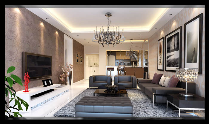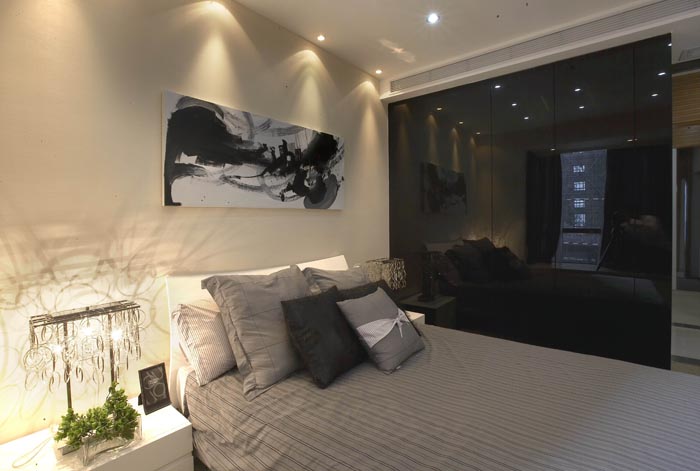 本案是现代前卫风格,客厅色调主要是以黑白灰为主,但主卧反差比较大,需要一个温暖活跃的颜色给主人一个浪漫的空间,整个空间给人一个时尚的感觉