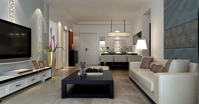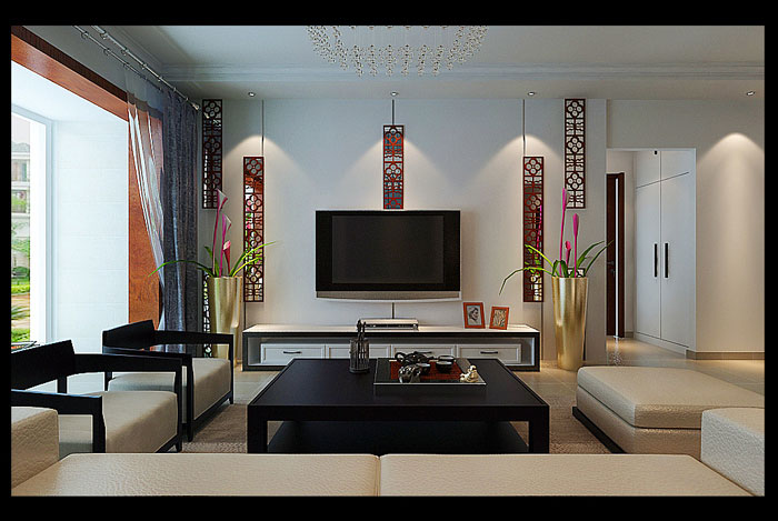 本套户型为经典的三居室,户型比较规范,布局合理,采光通风良好。对于生活节奏比较快的年轻夫妻,没有过多的考虑日常生活繁琐的细节,整体空间中门厅,客厅,餐厅同在一直线上,为了保证空间的开阔性和通透性,没有必要再刻意的划分功能区域,电视背景墙没有在造型上求太多的变化,利用镜面和中式花格来在视觉上扩大空间,加入中式元素,中式家具体现出客户的品味与境界……