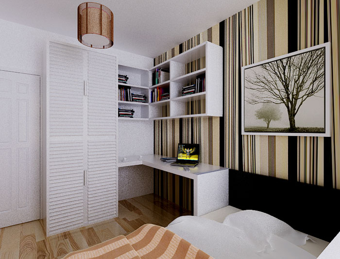 本案大量的运用壁纸与色彩的对接,再加上自然光源的摄入,让本来就阳光充足的户型充分得到光影的渲染.真正配合了设计的三元素完善整体家居.色彩,材质,光源.的运用合理,让简约中包容着雅致的氛围,最终成就本宅的优点与亮点.