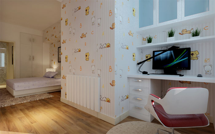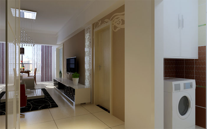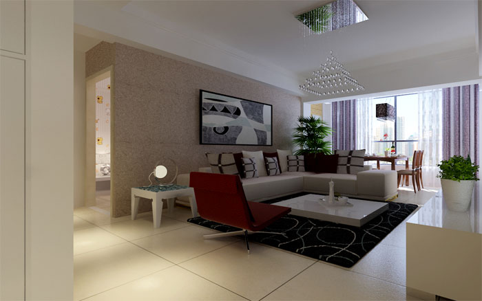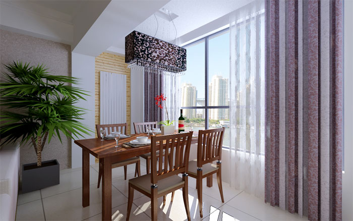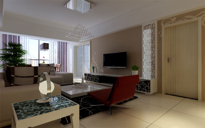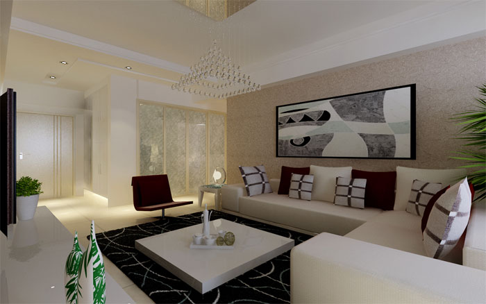本案为营造一种简洁大方的雅致风格,采用米色为主色调,以局部点缀的绿色为辅,客厅的碎花沙发与窗帘相得益彰。白色的茶几与电视柜显得十分素雅,配上色彩缤纷的鲜花后,顿时活力四射。清新淡雅的色调,柔和舒适的碎花沙发,营造一种纯粹的浪漫氛围。回到家,就应该忘掉压力,享受生活。