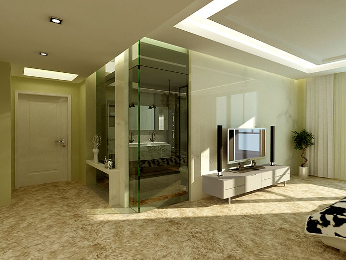 本案的设计就是要减少通道的空间,让通道划归入功能需求,再通过灰玻、灰镜和白色的干枝强化整体设计氛围的景深效果。主人希望此宅简单温馨,适宜私人居住,所以在立面的设计手法上运用些中性色彩和玻璃元素,让整个的室内环境效果简单简洁下来,再通过运用曲线和折线等不同的空间变化形式,变得简而不凡。最后就是独立空间的合理性,善于利用空间尺寸、比例分割、变化形式、层次关系等,让整体室内设计更加流畅,主题更加明确,思路更加细腻,最终打造此宅。