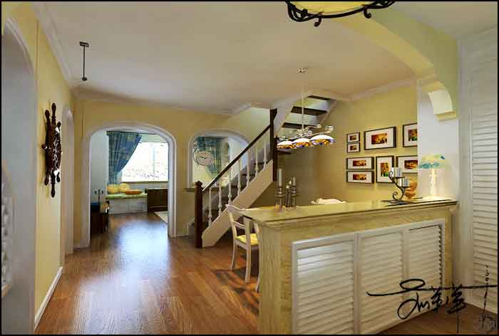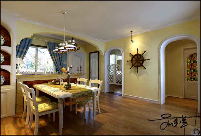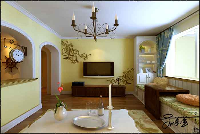 这种风格的“招牌”特点就是尽可能选用木、石、藤、竹、织物等天然建筑材料装饰居室。无论是天花板上的木横梁,还是粗糙的器皿和盆栽植物,还是纹理粗狂的石材,都散发着质朴、恬静与清新的气息。秋天是收获的季节,这个时节领略田园风格的居室装修,又会有另外一番感受——以黄色调表达田园丰收的感受。