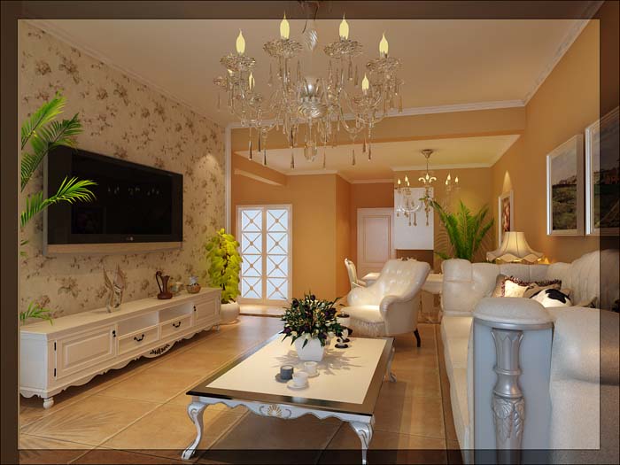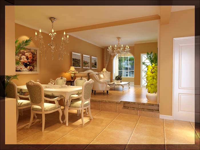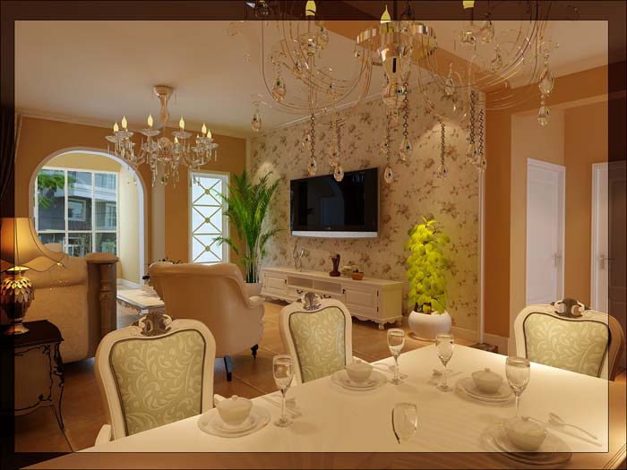 本案以粉色为基调,墙面刷了淡黄色乳胶漆,地面为烤面包色的砖,整个房间格调为简欧风格,简单舒适、温馨