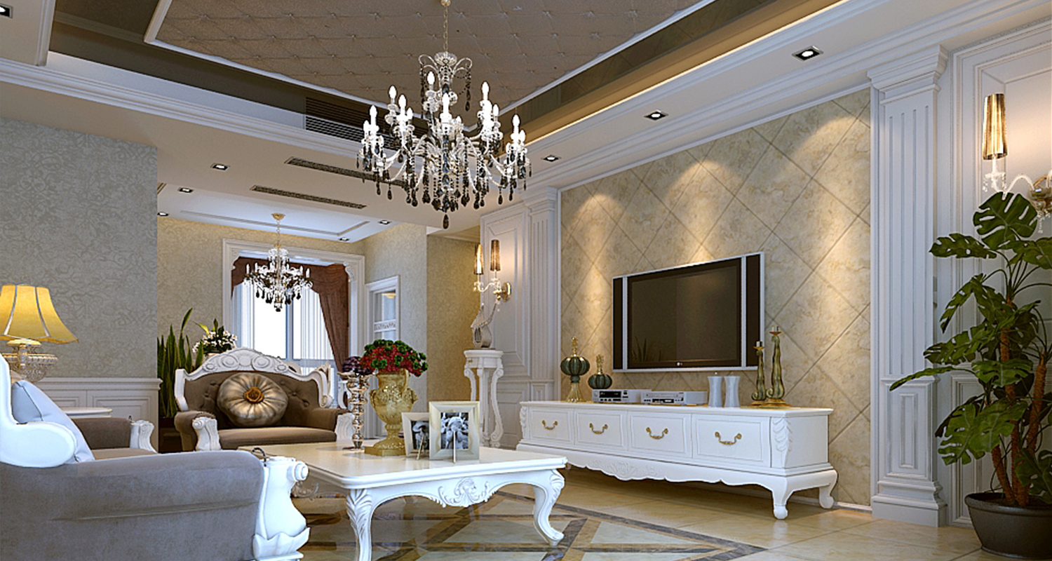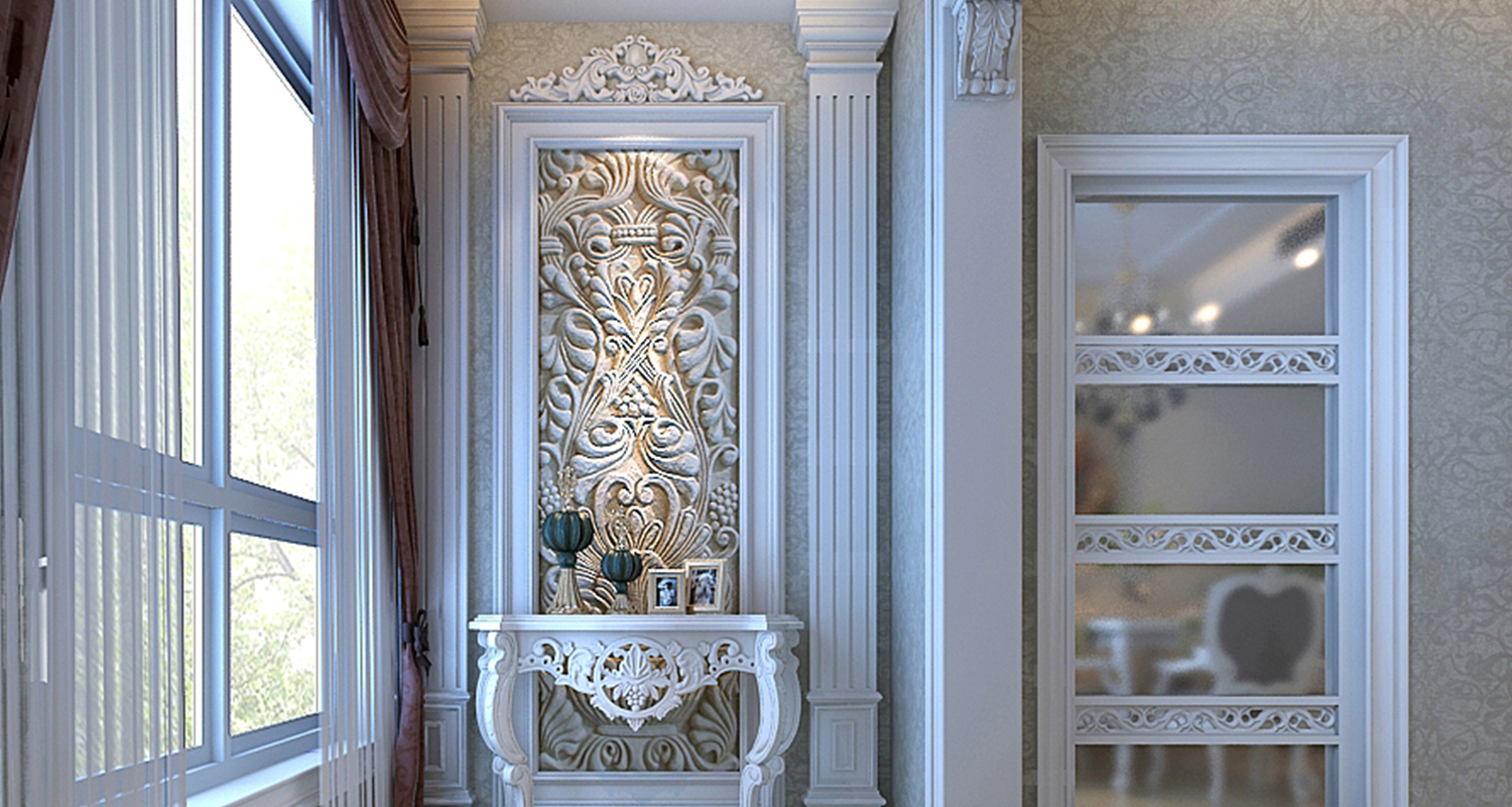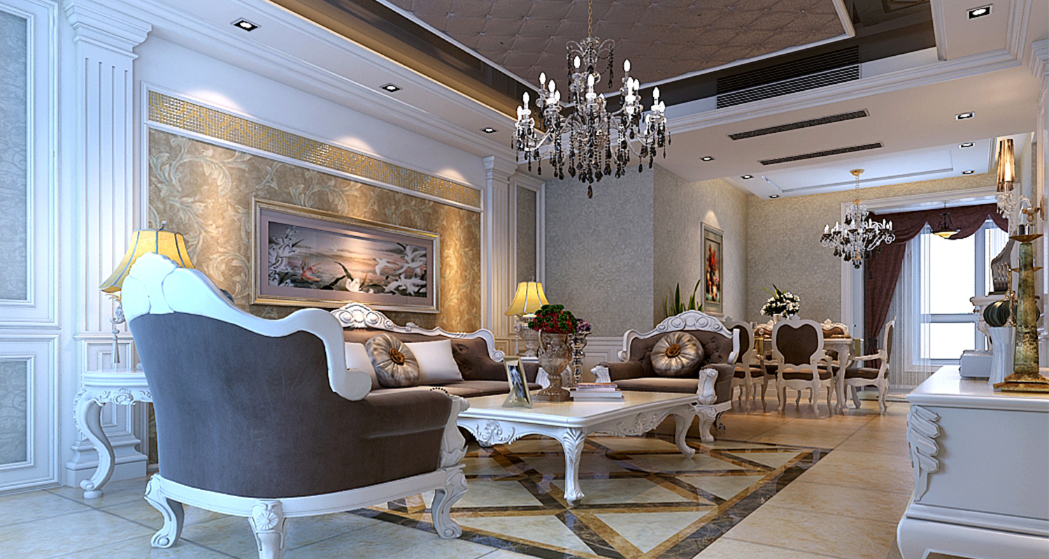 设计说明:本案以欧式风格为主题,在设计上追求空间变化的连续性和形体变化的层次感,整体以欧式和后现代的手法进行设计,简单的线条和几何图案,与局部的相对繁琐形成鲜明对比,带给我们不一样的视觉及触觉享受。色彩上以经典的米黄色与白色为主导,再加上大理石、雕花隔断、硬包、壁纸、木饰面、钛金条等材料的贯穿融合,既突显空间的凹凸感,又表现出现代时尚和优雅高贵,符合中国人的审美价值。