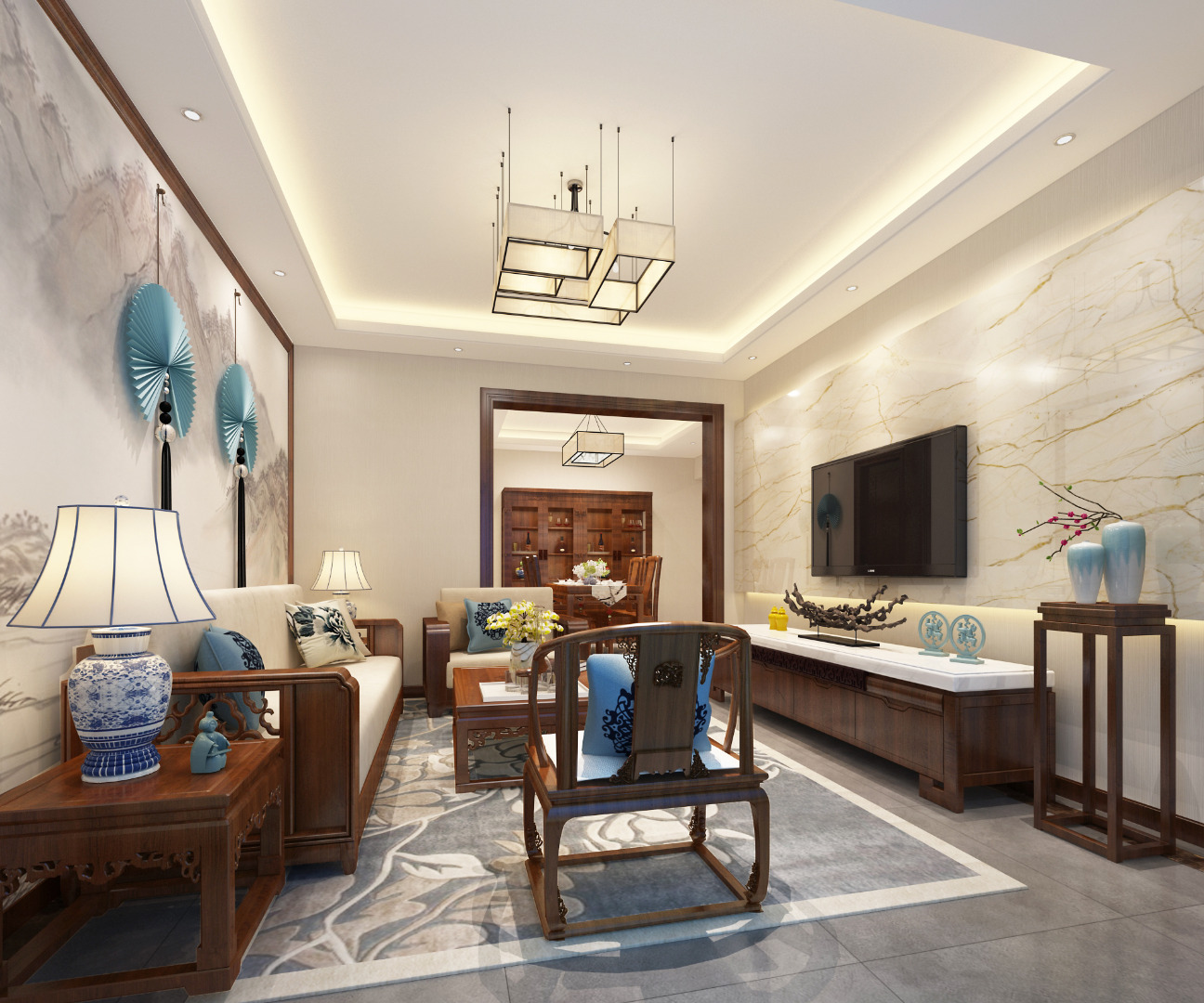 90㎡三居新中式风格 中海·开元壹号