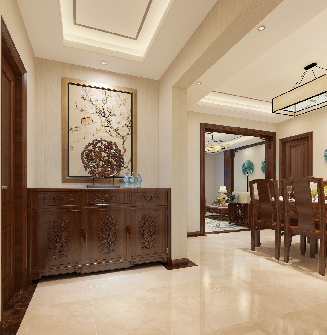设计说明:新中式并非完全意义上的复古明清,而是通过中式风格的特征,表达对清雅含蓄、端庄丰华的东方式精神境界的追求。它不仅仅包含了中式