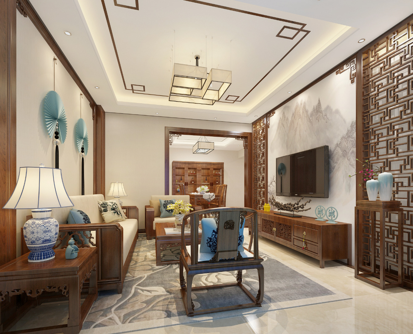 小区: 中海·开元壹号 面积:90㎡ 户型:三居 风格:新中式风格