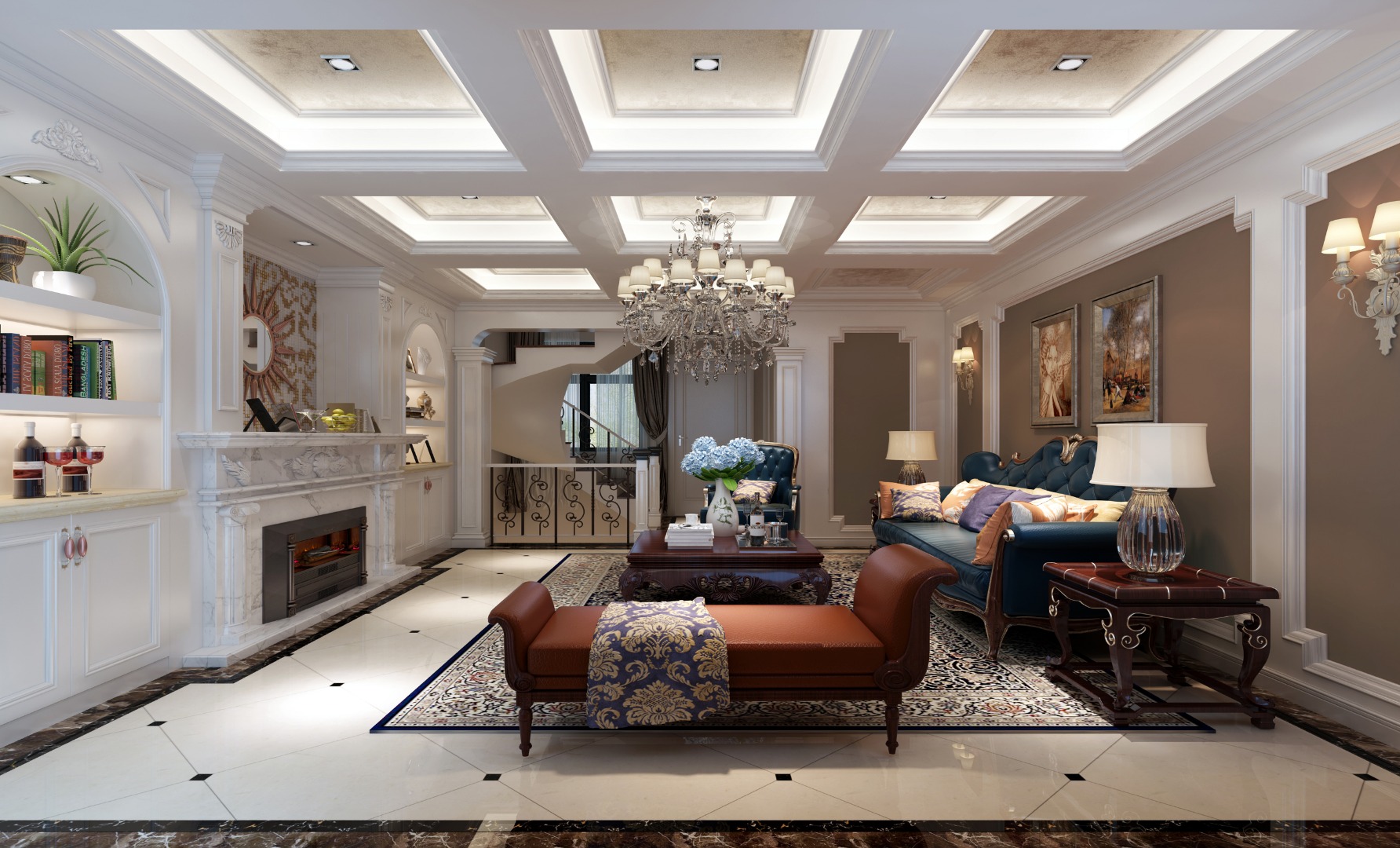 强烈的时代感元素。例如天花水晶灯的闪烁效果,配搭上欧式家具、水晶灯、车