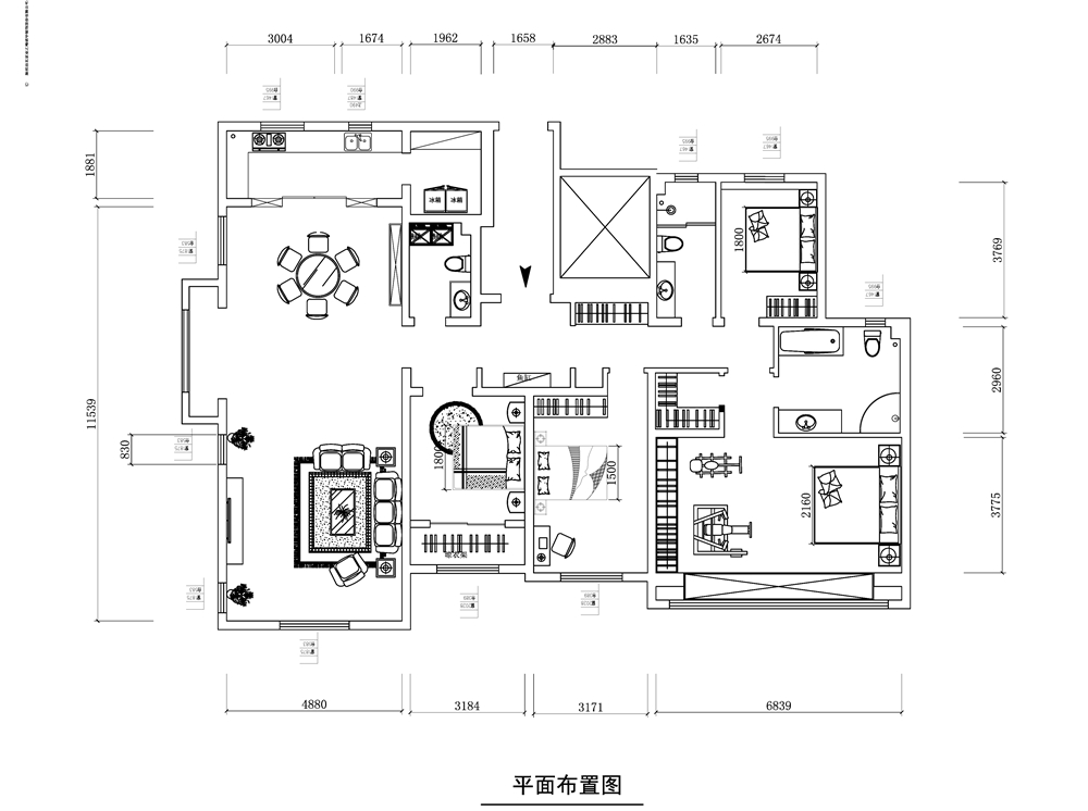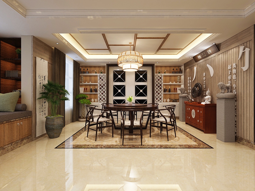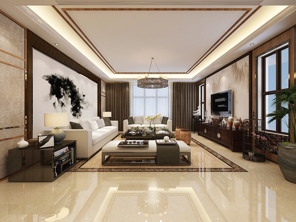 小区:蓝石大溪地 面积:240㎡ 户型:四居 风格:新中式风格