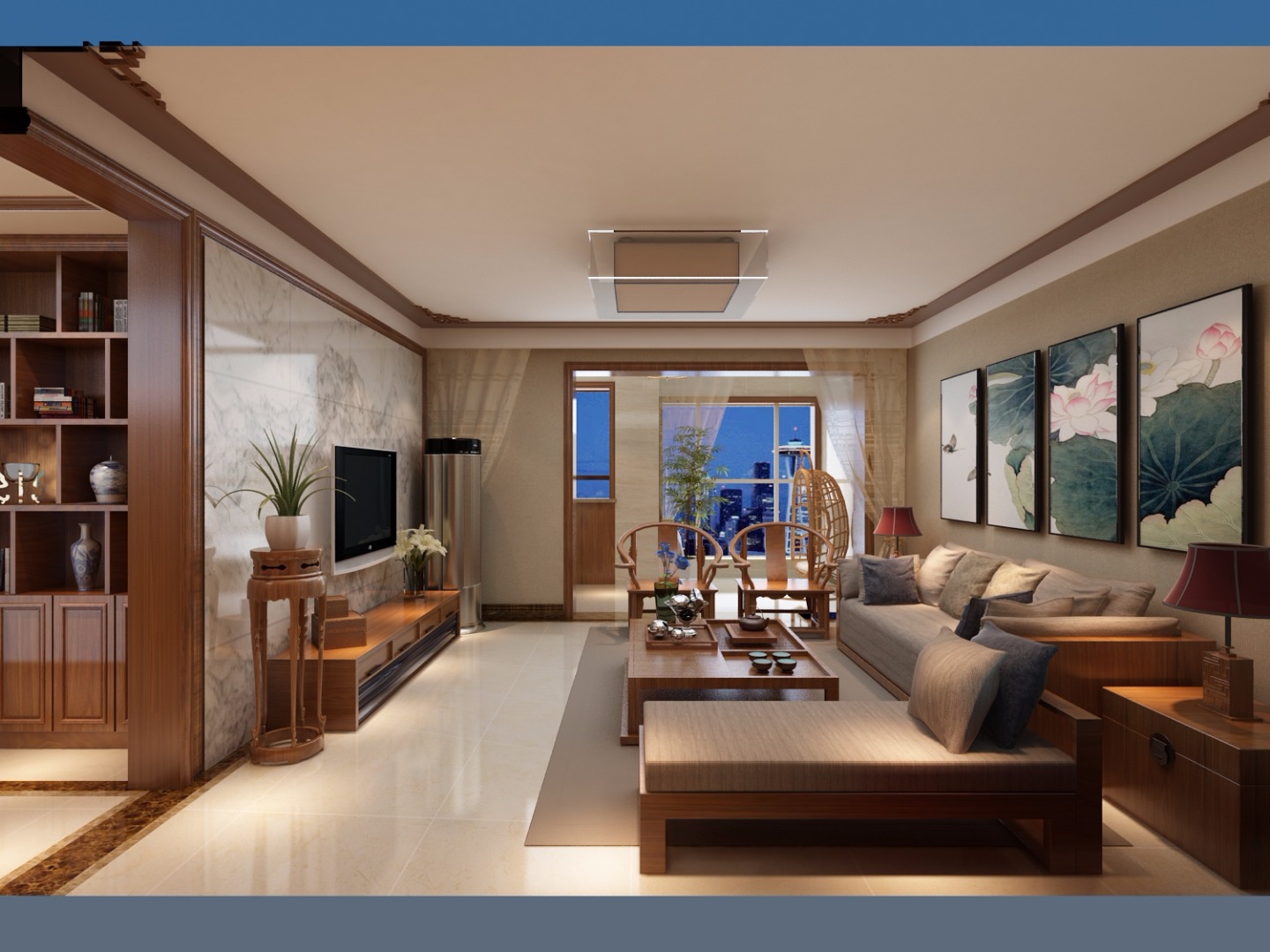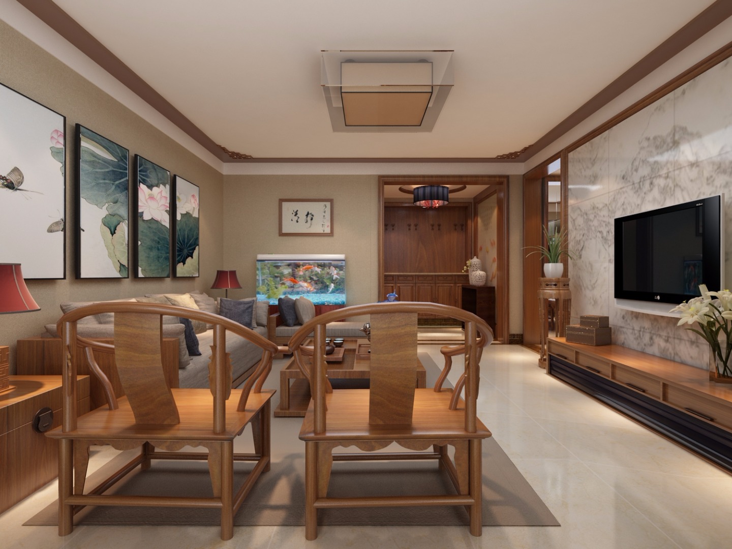 小区:鑫苑名家 面积:110㎡ 户型:三居 风格:新中式风格
