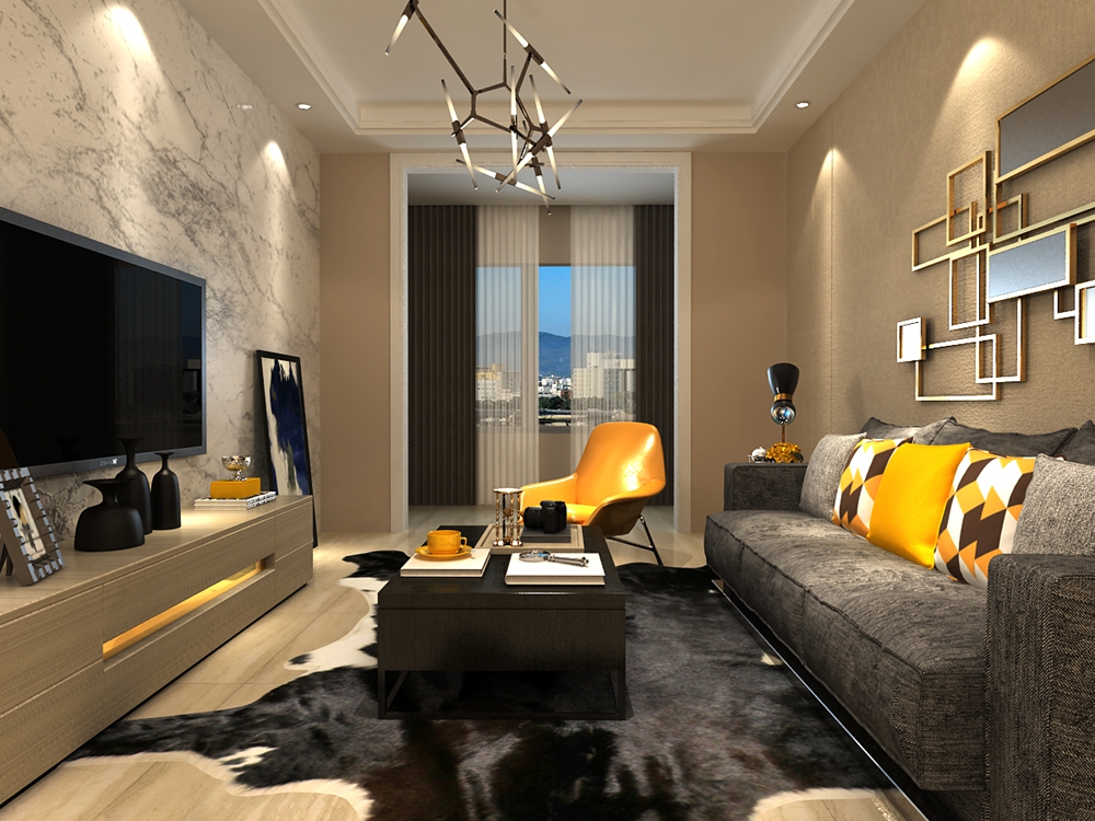 98㎡二居现代简约风格德润天玺