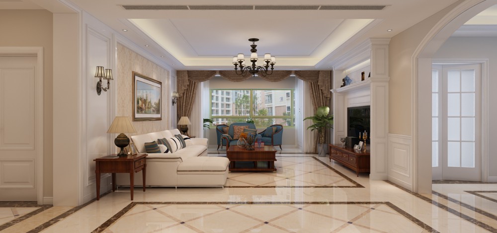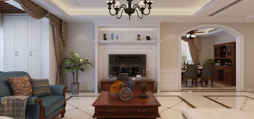 2 美式古典风格装修更考虑每个空间的多样用处。与客厅空间相比,美式古典风格起居室较低矮平和,起居室选材也多采用舒适柔软的材质,更注重家庭氛围。起居室内也多配以电视等娱乐用品,可以想象在这一空间中孩子的欢笑,电视声音,谈话声在这一空间中的其乐融融。