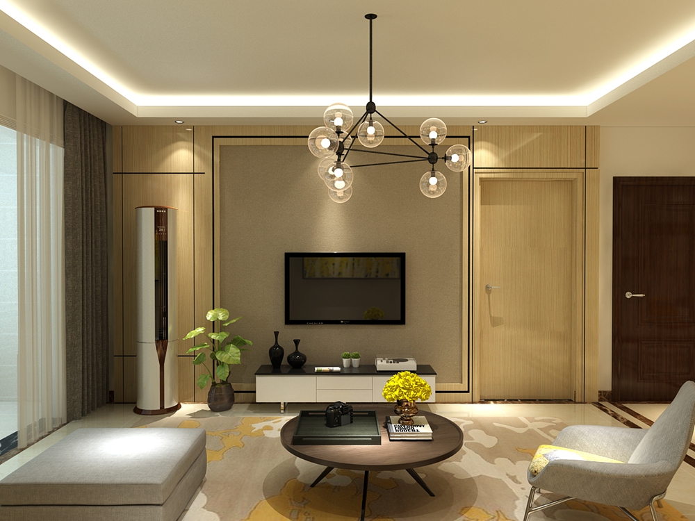 小区:黄金山水郡 面积:143㎡ 户型:三居 风格:现代简约风格