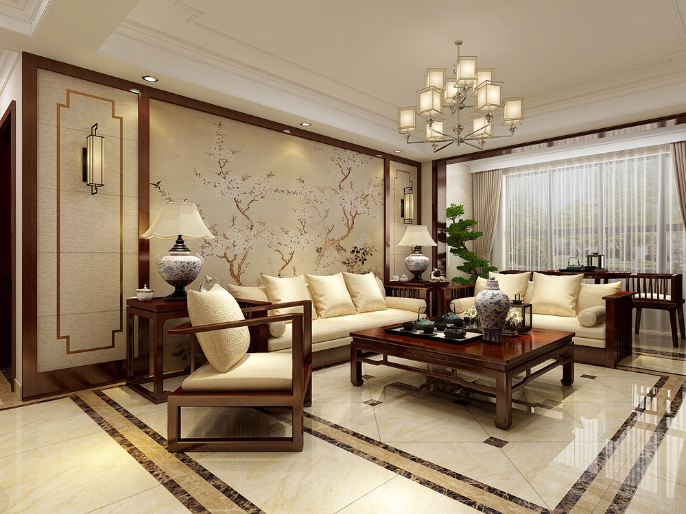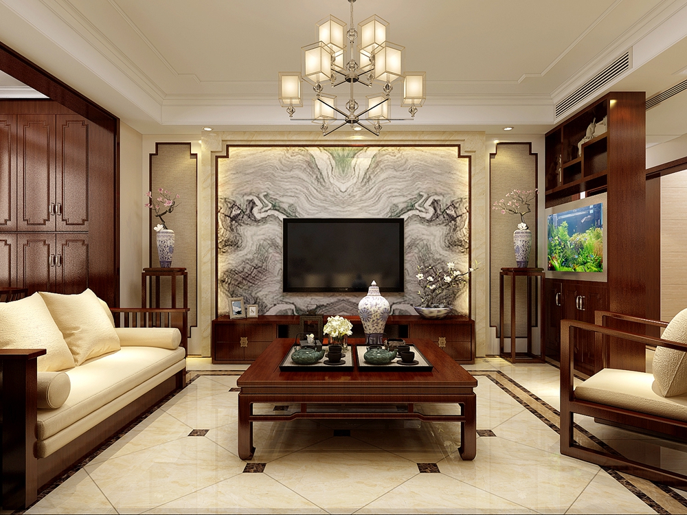 小区:济水上苑 面积:140㎡ 户型:四居 风格:新中式风格