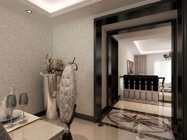 本案室内设计结合现代简约设计手法元素,营造尊贵、私密的氛围,配合少许新古典元素的配饰,更让整个空间极具时尚韵味。本案大胆的改造空间的结构,使整个空间最大化利用,餐厅空间的特殊设计,既是玄关,又是餐厅背景的点缀,使得走廊空间迂回宁静。单独隔出来的阳台空间,主卫集沐浴、泡澡为一体的设计,使空间最大化利用,同时也提高了生活品质。