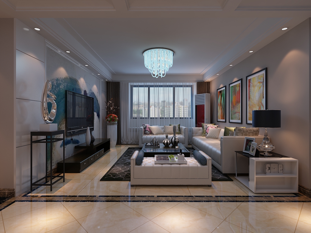 小区:中海国际社区 面积:130㎡ 户型:三居 风格:现代简约风格