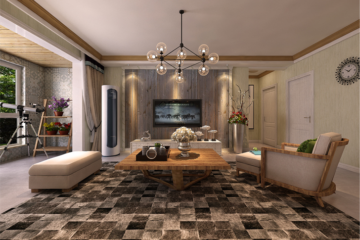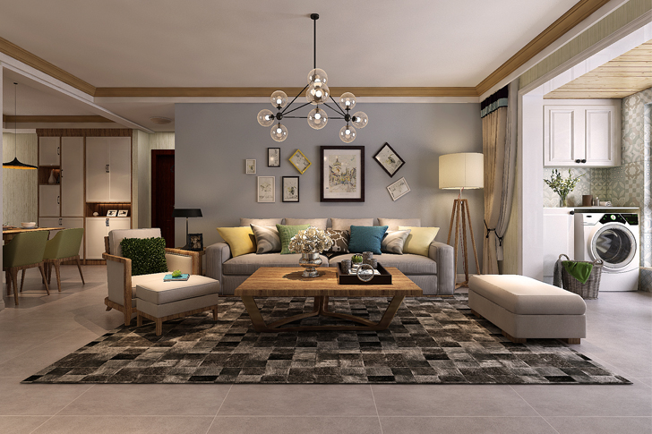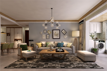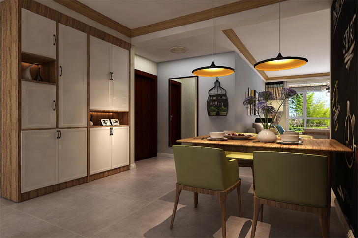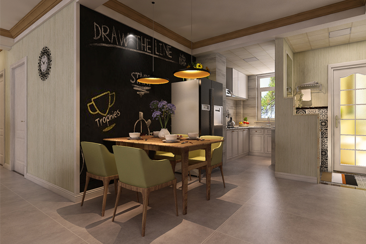 朴素的色彩、简约的家具、流畅的线条,让空间的每一处都呈现出一种自然与舒适,灰色的麻布沙发,搭配原木的餐桌,沉稳而素净,白色的柜面与原木的运用匠心独特,客厅沙发墙以组合挂画为装饰品,搭配布艺的沙发,餐厅的黑板墙与墙漆给室内空间形成了强烈的反差,追求个性,这种风格之下,生活在这个空间的人们能保存长期的自然和休闲。
