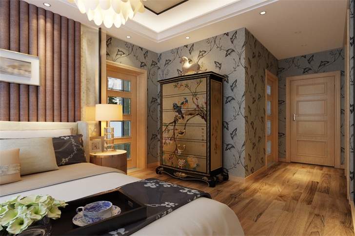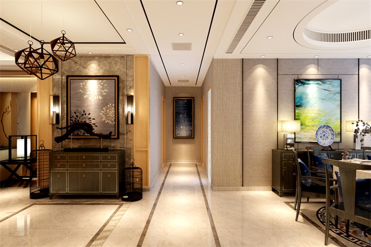 本案例是新中式风格,不同于传统的中式风格,新中式风格比中式风格有着更广泛的领域和空间。案例中,突破传统,将具备现代气息的多种元素融入其中,家具线条简单时尚,颜色古朴温和。给人一种庄重沉稳,稳重简单的感觉。本案的家具主以深色和浅色木纹,加上软装搭配,整体明亮轻快。