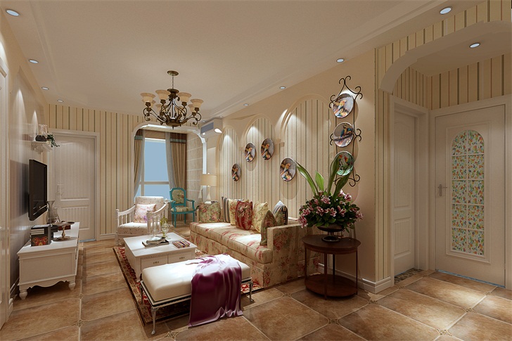 本案例中,并没有多复杂的线条和华丽的造型,主要在颜色搭配和软装配饰上体现出来,碎花、条纹、壁纸、沙发和布艺的搭配,十分讲究,既不显得眼花缭乱,又与自然完美结合,显得轻松惬意。在如今高科技快节奏的生活中获得心理和生理的平衡,体现居住人对生活的认知和对大自然的回归。