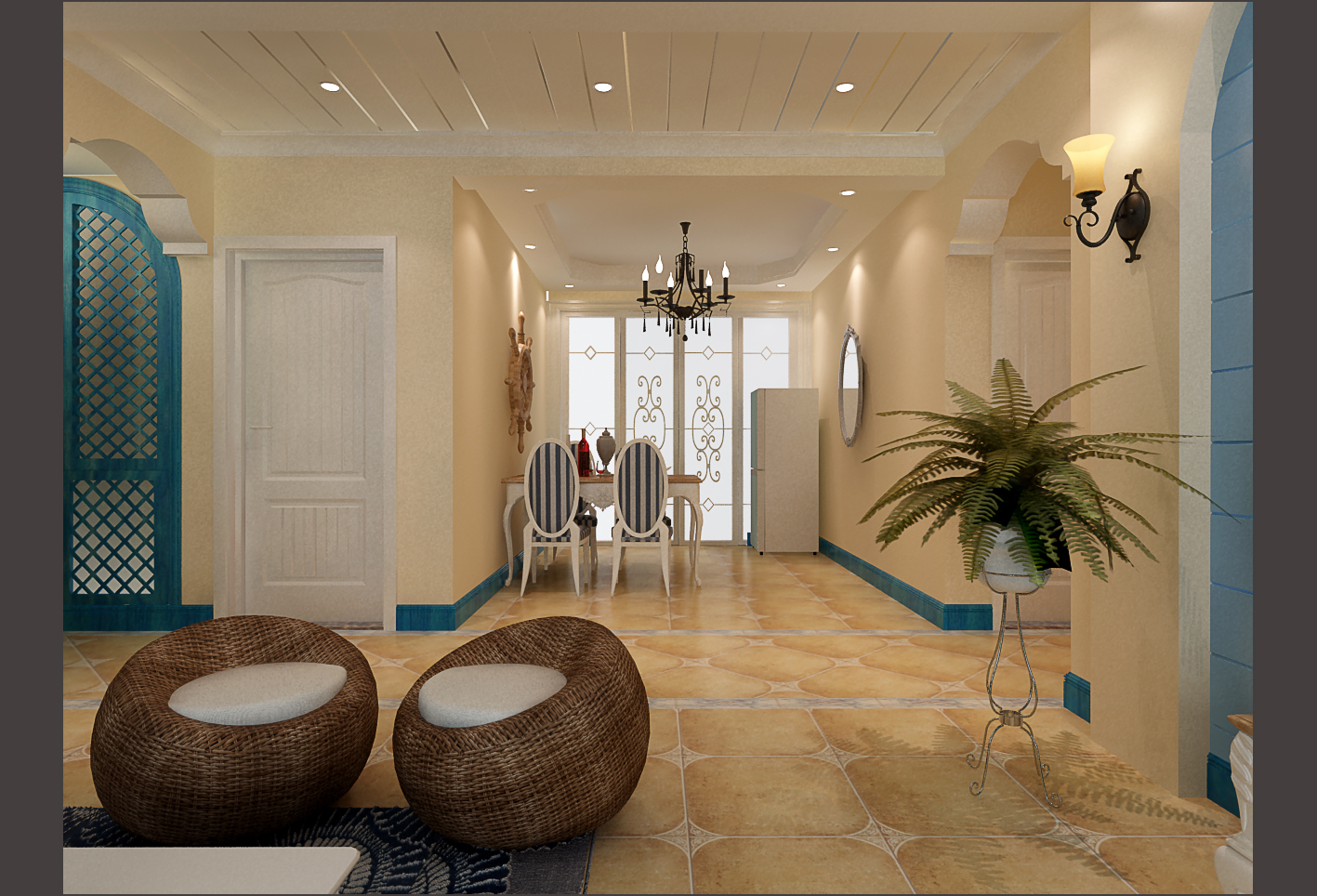 本案例中,并没有多复杂的线条和华丽的造型,主要在颜色搭配和软装配饰上体现出来,碎花、条纹、壁纸、沙发和布艺的搭配,十分讲究,既不显得眼花缭乱,又与自然完美结合,显得轻松惬意。在如今高科技快节奏的生活中获得心理和生理的平衡,体现居住人对生活的认知和对大自然的回归。