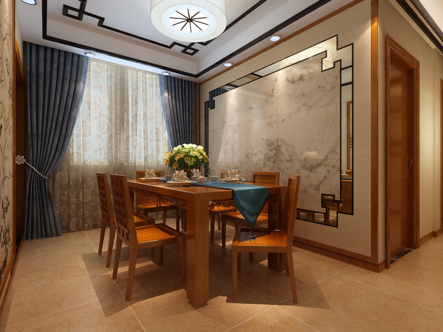 小区:东胜紫御府 面积:168㎡ 户型:三居 风格:新中式风格