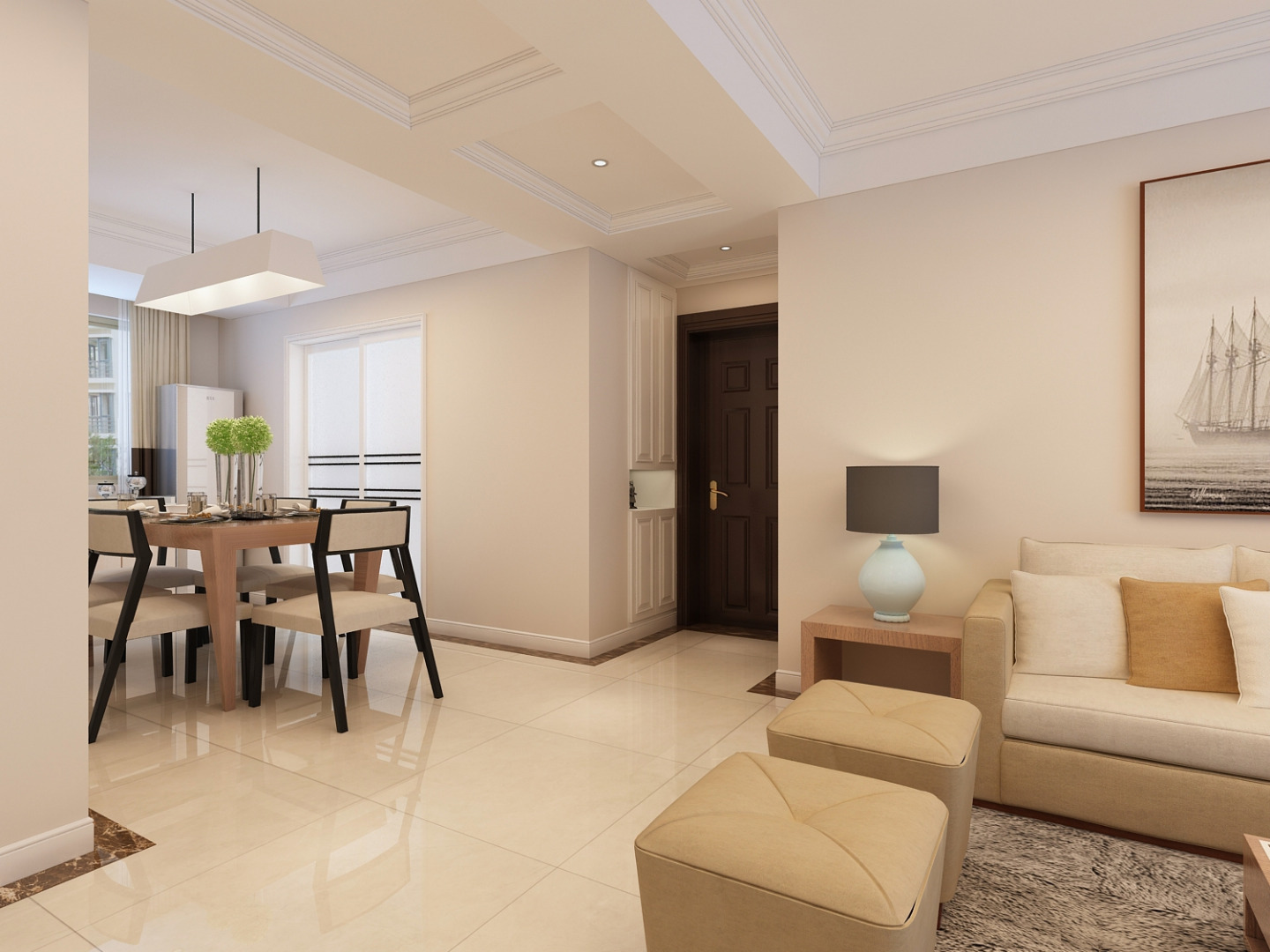家是心灵的港湾。随着人们在旅游中感受到简约的魅力,“简约但并不简单的装饰风格”。当疲惫的身心对家的依恋越发强烈,人们想要的是轻松、自由的环境,“现代简约风格”自然就成为家居设计的一种风尚。注重大小色块间的组合,地域性的后期配饰融入设计风格之中。 此居室整体采用中性色调,稳重,大气,却又不失品位,有令人眼前一亮的感觉。最重要的是强调功能性设计,线条简约流畅,色彩对比强烈,这是现代风格家具的特点。