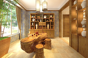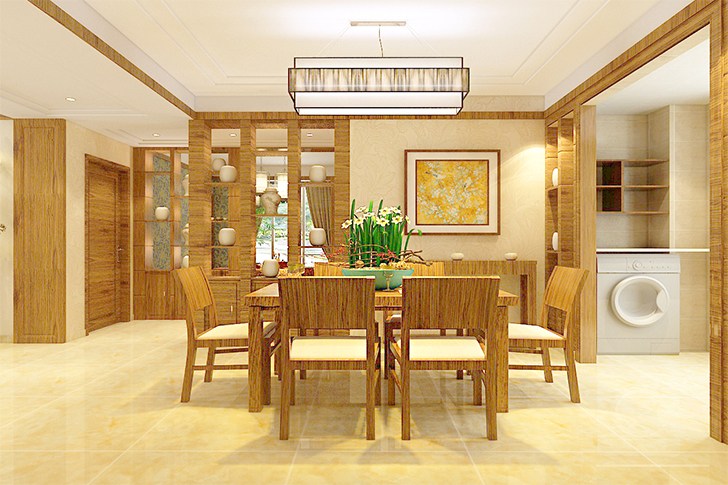 此方案的风格倾向定位为中式风格。这种风格非常讲究空间的层次感与跳跃感.在需要隔绝视线的地方,则使用中式的屏风.中式木门,工艺隔断.简约化的中式“博古架”等。通过这种新的分隔方式,单元式住宅就展现出中式家居的层次之美。再配以一些简约的造型为基础,添加了中式元素,使空间更加丰富,大而不空,厚而不重,有格调又不显压抑。
