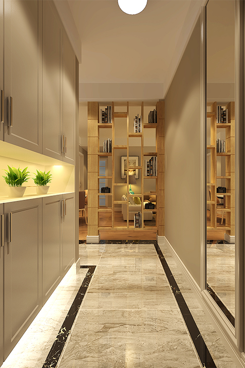 本案设计风格定位为简约港式,对于香港的生活很多人都会是生活、工作快节奏,但是他们的家,舒适、整洁、干净的室内空间形式和结构特点。家是心灵的港湾,放松心情。本案运用咖色暖色调,与原木色追求强烈的反差效果。强调塑造温馨的灯光效果。入户的镂空搁架,让整个入户有的自己的空间,简约舒适,扩大了视野空间。该案例时尚新潮,适合80后夫妻的居住。