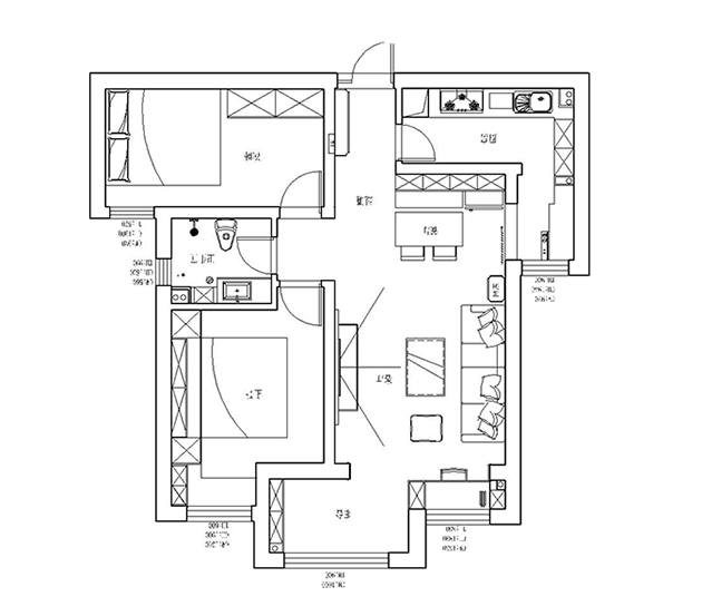 本案设计定向现代简约,简约风格不仅注重居室的实用性,而且还体现出了现代社会生活的精致与个性,符合现代人的生活品位。餐厅空间有限,设计了卡座储物空间,经济实惠非常适合年轻小夫妻的居住。